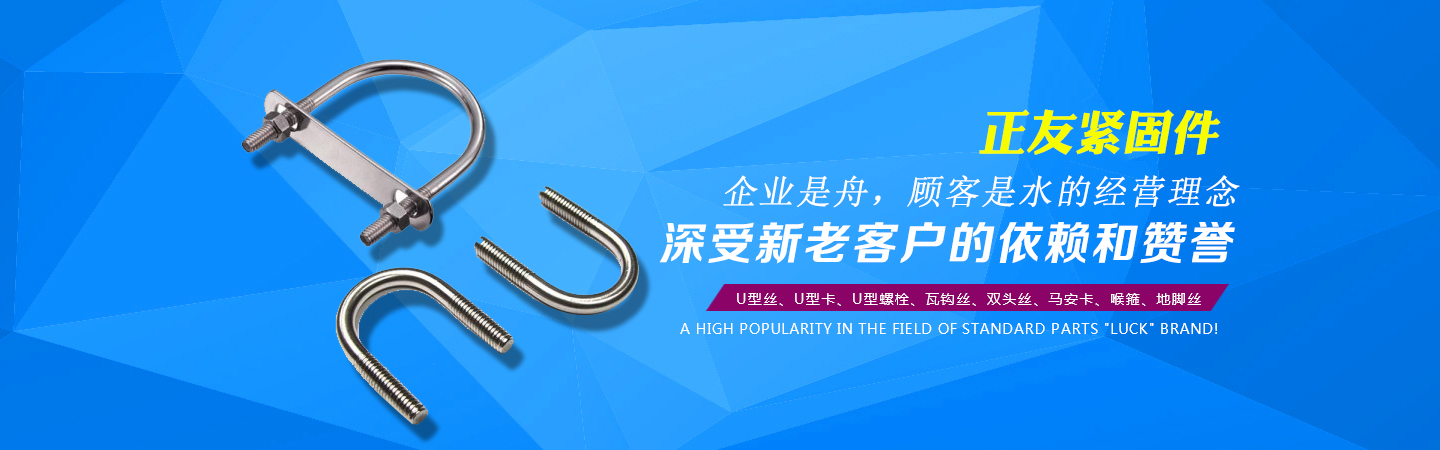 河北正友緊固件制造有限公司(原永年縣河北鋪天緣緊固件廠)坐落在永年縣河北鋪工業(yè)區(qū),地理位置優(yōu)越,交通便利。自1994年建廠至今,在各界人士的關(guān)懷和新老客戶的擁護(hù)及全廠員工的努力下,企業(yè)日益發(fā)展壯大,產(chǎn)品不斷更新,以U型絲、U型卡、U型螺栓、瓦鉤絲、雙頭絲、馬安卡、喉箍、地腳絲等產(chǎn)品的過(guò)硬質(zhì)量,創(chuàng)下在標(biāo)準(zhǔn)件領(lǐng)域知名度較高的“正友”品牌! 為答謝新老客戶長(zhǎng)期以來(lái)對(duì)我廠的幫助與信任,我廠在提高質(zhì)量的同時(shí),更是加強(qiáng)了產(chǎn)品售后服務(wù)的力度!以“企業(yè)是舟,顧客是水”的經(jīng)營(yíng)理念,鑄就“正友”日后的輝煌之路!